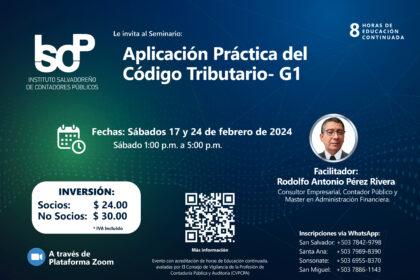 El ISCP le invita a participar en su Seminario Aplicación Práctica del Código Tributario G1-2024