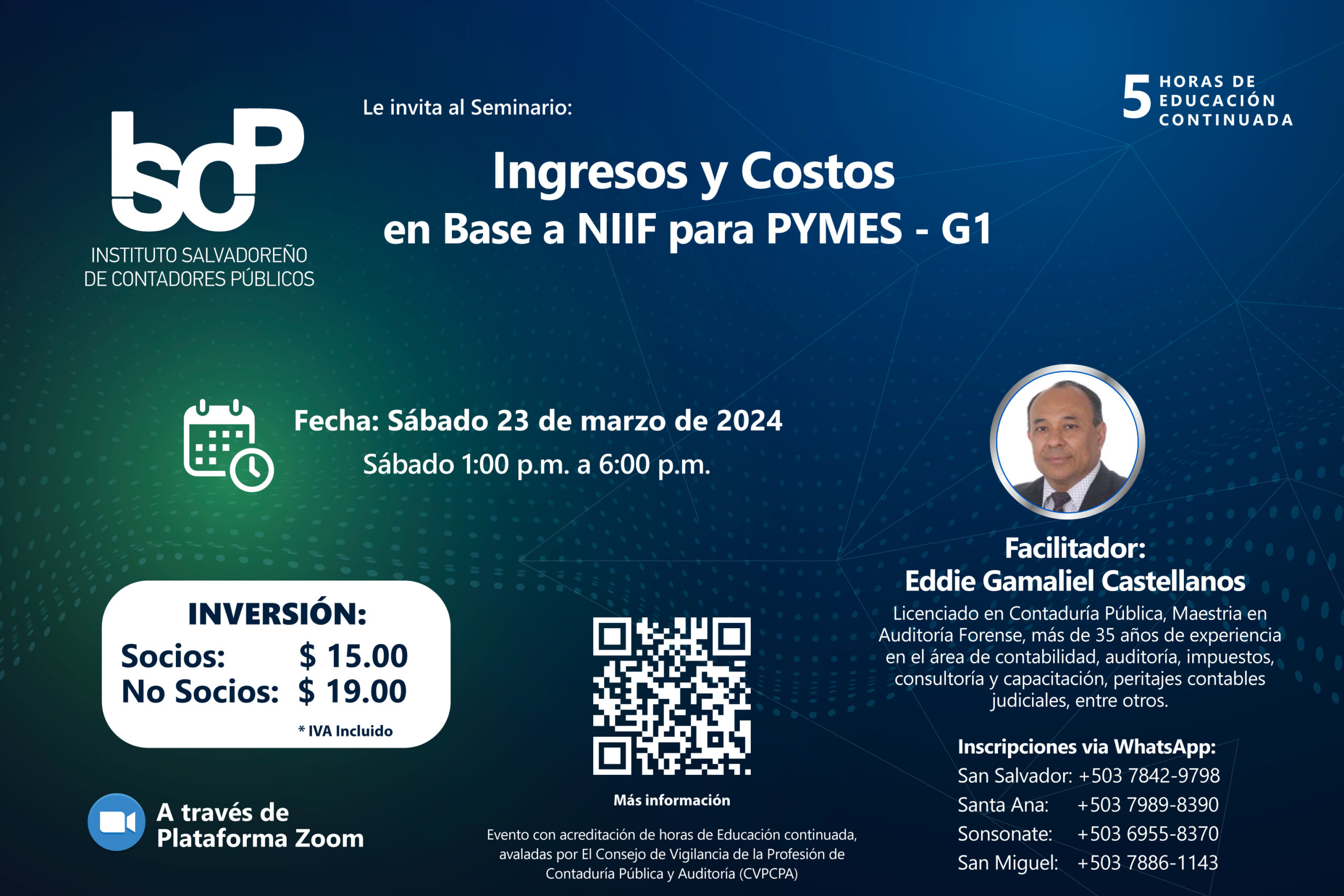 El ISCP le invita a participar en su Seminario Ingresos y Costos Base NIIF para PYMES G1-2024