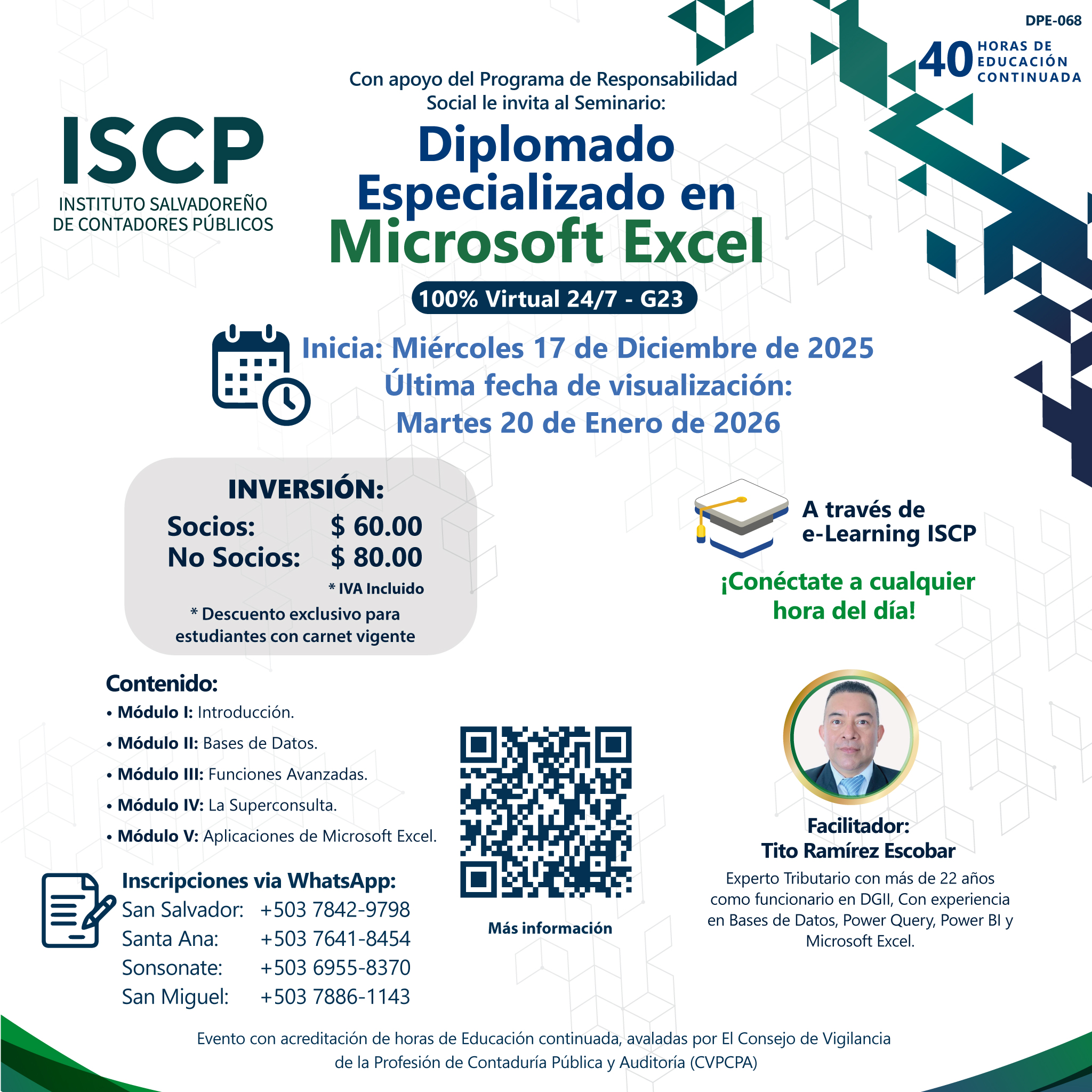 Diplomado Especializado en Microsoft Excel G23-2025 organizado por el Instituto Salvadoreño de Contadores Públicos (ISCP). 🌟