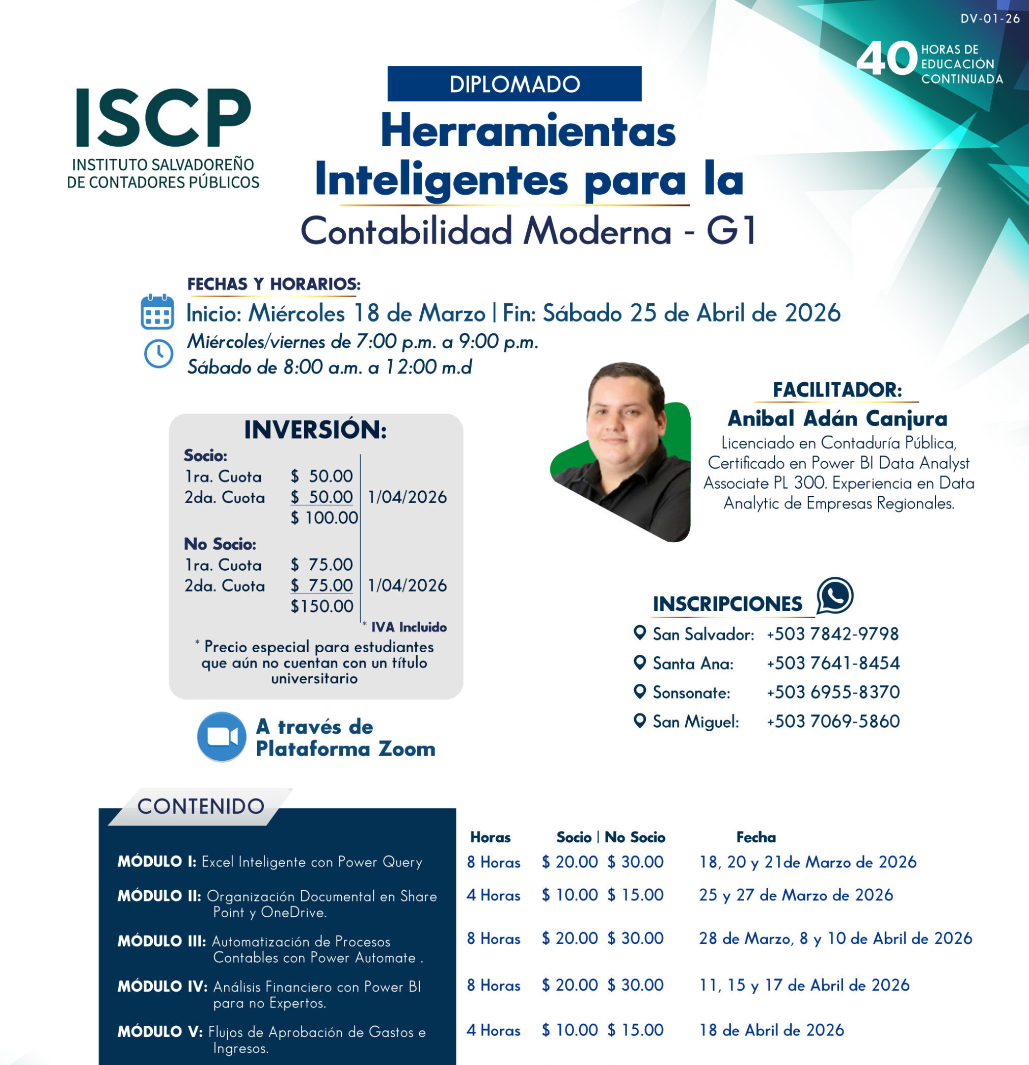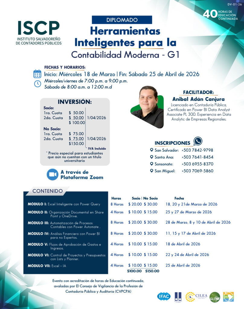 El Diplomado “Herramientas Inteligentes para la Contabilidad Moderna - G1” destaca el papel transformador de la tecnología en la práctica contable actual, enfocándose en el uso estratégico de herramientas como Excel (Power Query y Power Pivot) y Power BI. A través de una combinación teórica y práctica, se exploran métodos para automatizar procesos, mejorar la visualización de datos financieros y fortalecer la toma de decisiones. Esta capacitación impulsa a los profesionales a adaptarse a la era digital, optimizando su eficiencia y aportando mayor valor a sus organizaciones